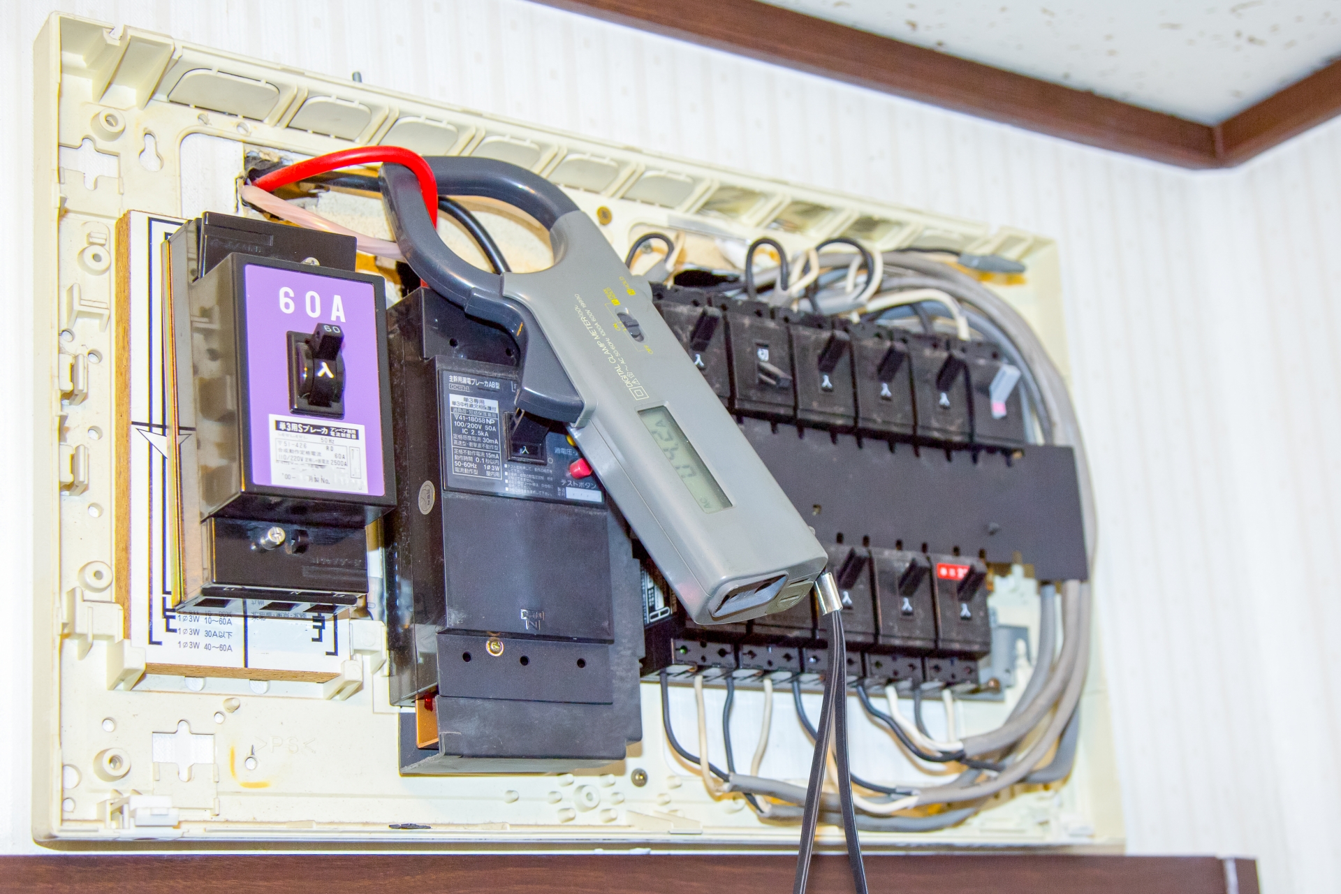 漏電遮断器のテスト:分電盤のテストボタンを押して、ちゃんと作動するか確認する。